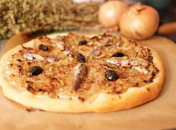 - la pissaladière, une tarte aux oignons confits, aux anchois et aux olives.
