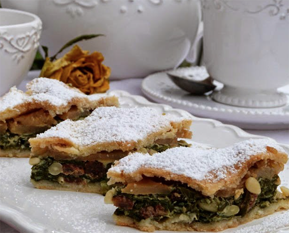 - la tourte de blettes, une tarte sucrée à base de blettes (un légume) et de sucre. I